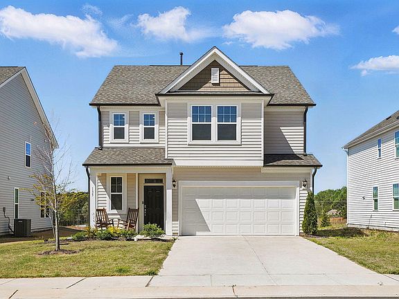 This home has been barely lived in and feels like new! It's filled with natural light thanks to the extra windows throughout. This home has LVP flooring on the floor first and the second floor hallway, laundry and bathrooms. The spacious kitchen island is great for cooking, working, or gathering with friends, and it opens into the family room and breakfast area. Upstairs, you'll find three bedrooms, a cozy space small home office, and a full bath shared by the secondary bedrooms. The primary suite includes a private bathroom with dual sinks, a large shower, and a separate water closet. Includes Refrigerator, washer, dryer and a 10-year builder warranty. Located just minutes from US-1 for an easy commute to Raleigh and Downtown Franklinton's restaurants, shopping, and entertainment. The builder is no longer offering this model in the community—making this lightly lived-in home a rare find!