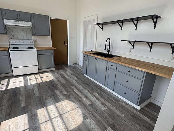 New floors, new paint, freshly refinished kitchen countertops. Property has high ceilings and tall windows.