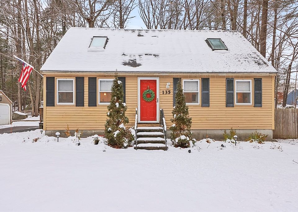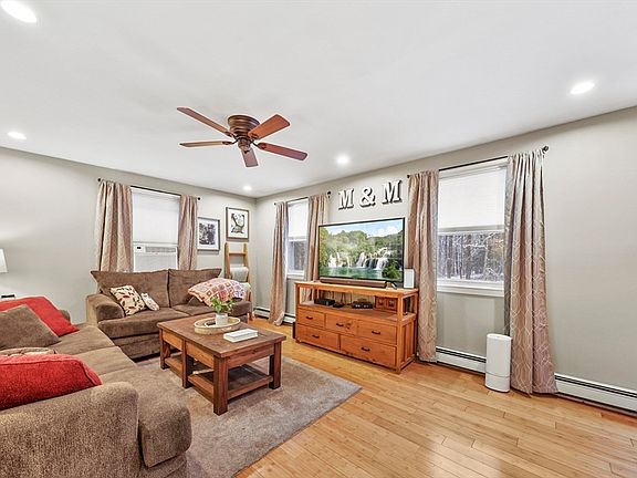 Welcome to this charming 2-bedroom, 2-bathroom home nestled in the heart of Nashua, NH. This quintessential Cape has so much to offer! Enter in through the living room which has hardwood flooring. Adjacent to the living room is a cozy study, complete w/ custom built-ins, making the perfect work space. This leads to the sunroom which boasts vaulted ceilings and a skylight. The kitchen offers beautiful updated cabinetry, SS appliances, & a center island. It connect to the formal dining room which is ideal for entertaining. A full bathroom completes this level. Upstairs, find 2 bedrooms. The spacious primary offers a walk-in closet! There is an additional full bathroom just off the hallway w/ dual vanities & a shower/tub. Basement offers additional living space, w/ a workshop and finished office area. There are washer/dryer hookups for added convenience. Outside has a back deck! Wooded yard for added privacy.