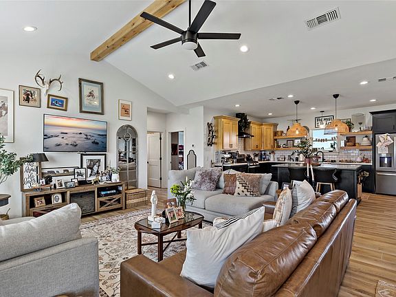 Step into this beautifully designed 3-bedroom, 2-bath home offering 1,664 sq ft of open-concept living, built in 2020 with a warm farmhouse feel. The spacious living area features vaulted ceilings and seamless flow into the kitchen and dining spaces — perfect for entertaining. The kitchen is a chef’s dream, complete with a gas range, center island, and plenty of counter space.