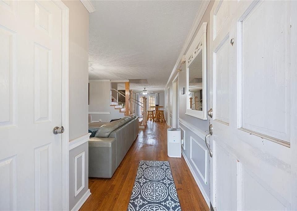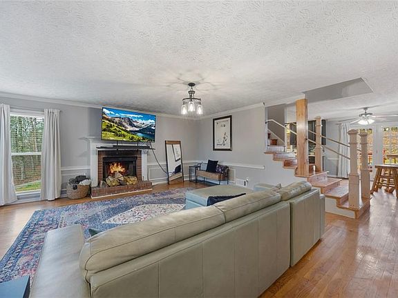 Charming four-bedroom, three-bath home on a large corner lot with a two-car side-facing garage! Nestled in a serene setting, this quaint home offers a perfect blend of comfort and style, all while overlook seasonal foliage. The eat-in galley kitchen boasts stainless steel appliances, granite countertops, a tile backsplash, and a gas range. Plus, the kitchen offers exterior access to the driveway, making it easy to unload groceries directly into the home. The heart of this charming home is the family room, featuring a welcoming wood-burning fireplace, perfect for cozy nights in or gathering with loved ones. The primary suite on the main level provides a private retreat, complete with a double vanity, jetted tub, and a walk-in shower. An ideal space to unwind after a long day. Crown molding, bay windows, hardwood floors, and another full bedroom and bathroom on the main level. Upstairs, you'll find two more generously sized bedrooms and another full bathroom, ensuring plenty of space for family or guests. As the weather warms, you'll love spending time outdoors on the large front and back decks, perfect for hosting gatherings, grilling, or simply relaxing in your beautiful surroundings. Located near reputable schools, parks, walking trails, and lots of shopping and dining options. This home offers both peaceful living and easy access to everything you need. Don't miss out on this incredible opportunity schedule a visit today and start imagining all the ways you can make this home your own!