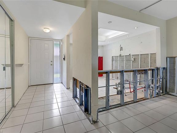 This charming first floor condo (NO STAIRS) located in Spanish Pines at Palm River offers an opportunity to make this unit your own. This 2 bedroom, 2 full bath is being sold AS IS and offers a blank canvas with most of the demo already completed for the Buyer. Featuring one of the largest floor plans currently available in all the condos for sale in Palm River and North Naples, this unit includes 1 covered parking spot, 1 uncovered parking spot, extra storage space and ample natural lighting throughout! The open and spacious living space gives you a direct view outside at the glistening lake and lush landscaping. The living area is overlooked by a dining area and the kitchen that boasts an opportunity to convert this into your dream space. The generously sized master bedroom provides direct lanai access and a nicely sized walk-in closet with custom shelving as well as your own private ensuite. A second bedroom, full bathroom, laundry room and large lanai complete this unit! Spanish Pines offers a community pool and is located in North Naples just minutes from a variety of shopping/dining options (Mercato, Trader Joes, Whole Foods) and is in close proximity to some of Naples’ most breathtaking beaches. Whether you are searching for a primary residence, investment property or vacation home, this unit offers an incredible opportunity for all!