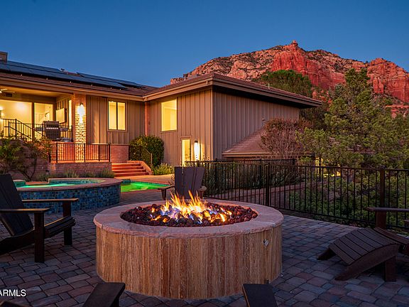 Enjoy breathtaking red rock views from this 8,377 sq. ft. fully remodeled luxury home, completed in fall 2024 and located in a premier gated subdivision in West Sedona. The property features resort-style living with a heated pool, hot tub, water feature, private guest casita (house) with a kitchenette, and a circular driveway leading to an enclosed front courtyard with a Feng Shui water feature. Inside, the home offers a well-appointed gourmet kitchen with new appliances, new temperature-controlled glass-enclosed wine wall, entertaining wet bar, and a cozy fireplace in the family room. Enjoy movie nights in the home theater and stay active in the fitness gym with its own private bathroom. The primary suite includes a sitting room and a spacious walk-in closet. Truly exceptional! 30-Day Rentals.
