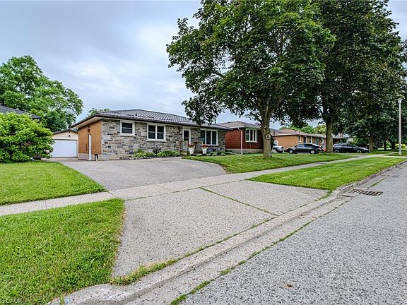 Impressive All-Brick Bungalow with In-Law Suite Potential in Prime Location Beautifully updated 1,300 sq ft all-brick bungalow offering bright, functional living space and exceptional versatility. The main floor features 3 spacious bedrooms, hardwood floors, pot lights, and an open-concept living/dining area, perfect for families or entertaining. The spacious kitchen boasts stainless steel appliances, gas stove, and ample cabinetry. The fully finished basement with separate entrance includes a second kitchen, 3-piece bath, large rec room, bonus room, and laundry, ideal for an in-law suite or income-generating rental. Notable Updates: Steel roof (2021), furnace (2018), windows (2018), stone exterior (2018), electrical panel (2019), A/C (2016). Situated on a generous lot with a detached garage (24.5’ x 14’), parking for five, 8x11 shed, and a 20x35 concrete pad—perfect for outdoor entertaining or extra storage. Fantastic location near all amenities, schools and shopping, . A true turn-key opportunity with flexible living options, live in, rent out, or both!