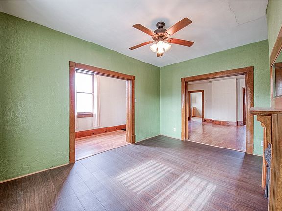 This truly charming 2 bedroom, 1.5 bath two story home features two beautiful decorative fireplaces, pocket doors, a built-in dining room cabinet, new roof in 2022, new furnace 2018, upgraded 200 amp electrical service, a generous level yard with back deck, fire pit and detached garage too. Bedroom sizes are spacious here, and the second bedroom has a bonus captive room that could be great office space or walk-in closet. So much potential! Fantastic starter home or addition to your rental portfolio.