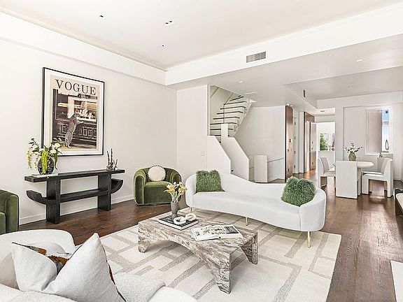 Upon entering this beautiful townhouse from the street level, you step into a spacious tiled foyer. This area leads to a large wood-paneled console that includes a roomy entry closet, a hidden staircase to the cellar, an elevator, and a powder room. Continuing through the house, you will discover a big informal entertaining area. This space features a full wet bar, a wine refrigerator, and French doors that open up to a lovely garden.