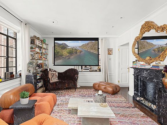 Gut-renovated with meticulous attention to detail, the home features Italian marble finishes throughout and a chef’s kitchen outfitted with a Wolf stove and hood, Verona oven, and Sub-Zero refrigerator and freezer and a Miele dishwasher. A custom banquette dining nook flows seamlessly into the expansive living room, complete with a south-facing picture window, marble ethanol fireplace, and hidden projector for effortless entertaining. Washer/dryer installation permitted.