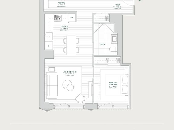 Available furnished or unfurnished, residence 5G is a spacious 715-square-foot 1.5-bedroom, 1-bathroom with a separate home office/guest bed and soaring 10' ceilings. South-facing exposures, floor-to-ceiling windows, and generous closets provide abundant light and storage.