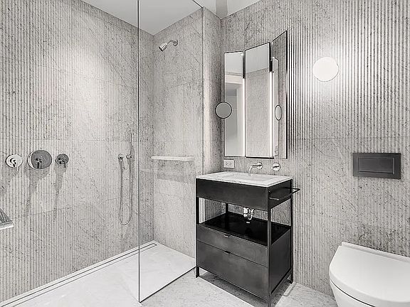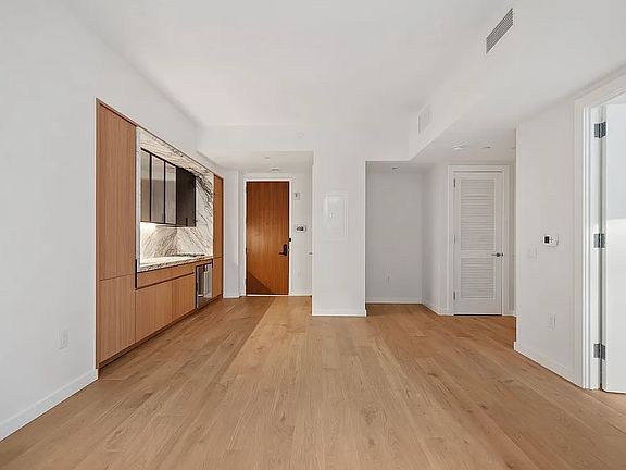 Spanning 616 square feet, this home has been crafted by the renowned design studio Neri&Hu to balance modern minimalism with natural warmth. Oversized windows flood the space with southern light, while wide-plank oak floors and a streamlined layout create an airy, inviting atmosphere. The custom kitchen is a chef's dream, featuring Gaggenau appliances, Calacatta Monet marble counters and backsplash, and fluted oak cabinetry.