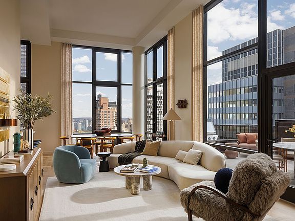 Penthouse B is a wholly unique luxury home, offering 2 bedrooms, 2 bathrooms, a home office and fireplace lounge, and a private terrace with an outdoor grill. Spanning 1,674 square feet, the home boasts soaring 15-foot ceilings, three exposures, and an expansive, beautifully appointed kitchen with a chef’s island. Sweeping South, East, and North views—framed by dramatically scaled windows— capture Manhattan icons such as the Chrysler Building and the East River, as well as the newly completed JPMorgan Chase Tower— all set within a broader panorama of distinguished New York City vistas and landmark architecture.