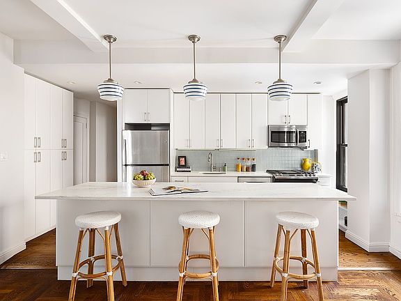 Across the home, there is an ideal combination of the historic and the modern, a sense of grandeur and a human scale. All bathrooms are fully renovated and windowed. Original hardwood floors have been carefully maintained, and classic details abound, from crown molding to French doors with crystal knobs. All lighting conveys.