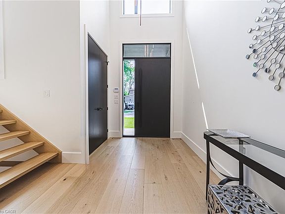 Custom, all brick, 2024 new build masterpiece sitting on a gorgeous lot backing onto mature greenery, and boasting a stately-modern presence from the road. Prestigious street lined with other custom homes. Prepare to be memorized by soaring ceiling in foyer open to above with breathtaking chandelier and open riser, white oak staircase with rod iron spindles. Perfect main level design with dining/living room separated by two sided fireplace. Family room overlooking private backyard with massive high end aluminum windows that continue through out the home. Tasteful black kitchen features chic flat panels and undermount lighting and is accentuated with high-end appliances, quartz countertops and massive island with ample storage on both sides. Gorgeous LED lighting in ceiling gives a modern presence. Second floor is well equipped with four generous size bedrooms each featuring their own walk in closets. Master bedroom boasts luxurious ensuite with glass shower, soaker tub, double sink with high end faucets and walks through to a dream closet with custom built ins and ideal design. Second bath is a jack and fill being shared by two of the four bedrooms. All bedrooms are blanketed in stunning hardwood floors and boast light drenched windows giving a lively presence. Open staircase also leads to basement featuring 9 foot ceilings and oversized basement windows. Paved four car driveway and premium garage doors complete this homes curb appeal. This home is minutes to arterial infrastructure and all amenities. Luxury Certified.