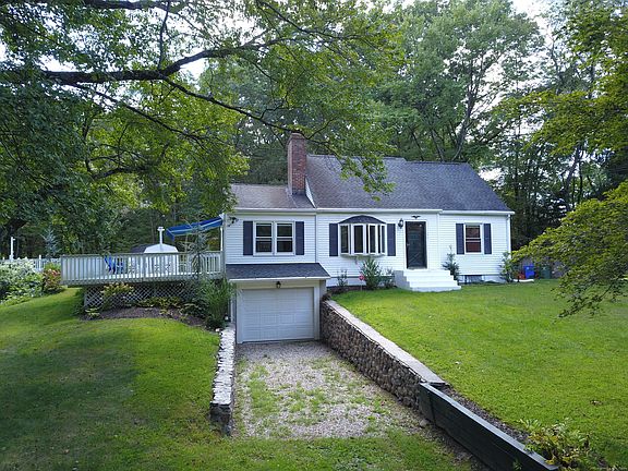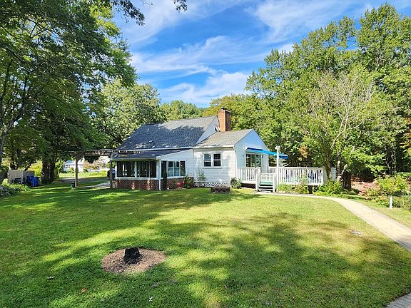 Tucked away on a private 1.5-acre corner lot in Waterbury, 135 Elise Drive is a thoughtfully updated expanded Cape offering space, charm, and flexibility. This four-bedroom home features multiple living areas, including a sun room, living room, and family room with custom built-ins and two wood-burning stoves that add warmth and character. The remodeled kitchen boasts granite countertops, stainless steel appliances, and an easy flow to outdoor entertaining spaces, including a heated three-season porch, two patios (one with a retractable awning), a Trex deck, and an above-ground pool-all surrounded by mature landscaping and stonework. With two bedrooms on the main level and two upstairs, the layout is ideal for families, guests, or a home office. The lower level includes garage access, a new washer and dryer, and ample storage. Recent updates like a newer well, boiler, and water heater provide peace of mind, making this rare Waterbury property a perfect blend of comfort, character, and room to grow.