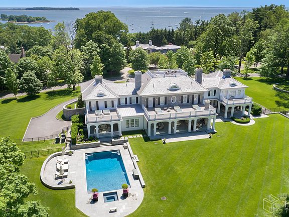 Set in the prestigious Field Point Circle Association, which provides a 24-7 guard attended gate house, and a level of privacy that is difficult to attain. Close proximity to the water with Long Island Sound views from many rooms. Completed in 2017 by an award-winning design-build firm, this custom home has the scale and proportions to match it's surroundings. The first floor strikes a balance between formal entertaining areas, and casual family rooms, with multiple paved porches at the rear, overlooking the over-sized, landscaped rear gardens and pool. The second floor includes a generous master suite with large walk in closet, plus 3 further family bedrooms, all en-suite and an optional fourth bedroom. The third floor contains an office / homework space leading to the roof deck and panoramic water views. The lower level includes a large custom bar, and entertaining area with golf simulator, gym area, and guest or staff suite. Parking for 4 cars with discreet entrances on either side of the home. Truly a rare and unique property.