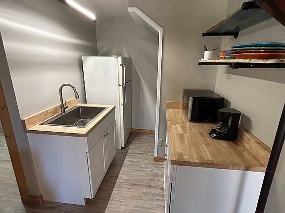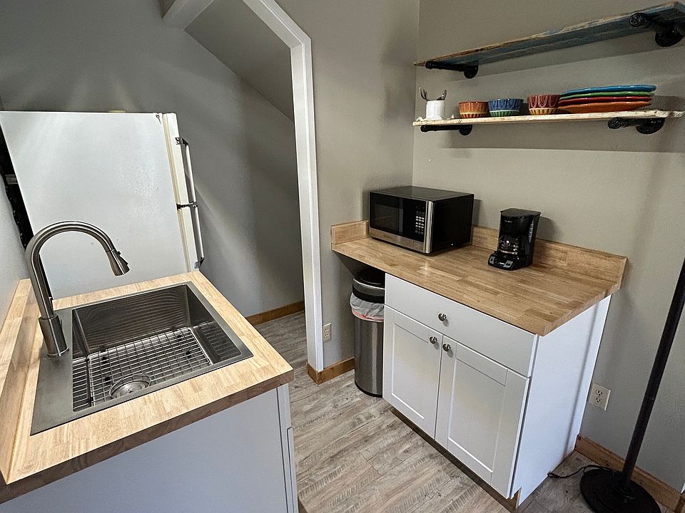 The suite includes a private bathroom and a kitchenette with a microwave and a new stovetop (currently being installed). Please note: there is no oven or dishwasher, and no on-site laundry facilities.