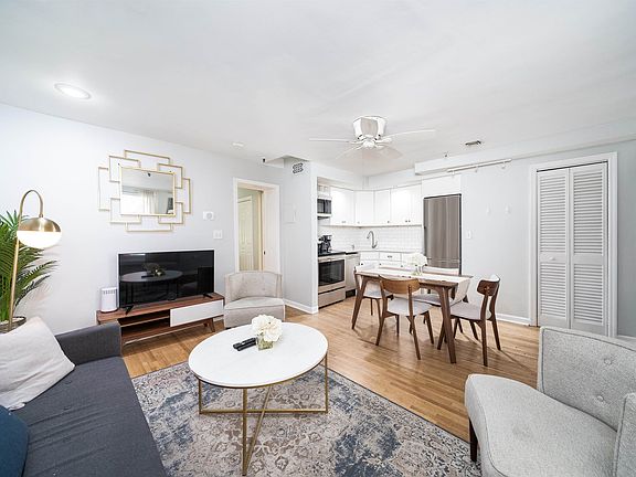 Claim your own elegant oasis on one of the most beautiful tree-lined streets in downtown Hoboken. This 1 Bed / 1 Bath home features a pleasant layout with open kitchen / living room and comfortable bedroom with en-suite bath. The kitchen is highlighted by tasteful white cabinets, subway tile backsplash, and stainless steel appliances; plus hardwood floors throughout. Enjoy the serenity of your private, off-street entrance in a quiet, gated courtyard. With shopping, restaurants, waterfront walkway, and the PATH all just moments away, this convenient and private retreat is perfection.