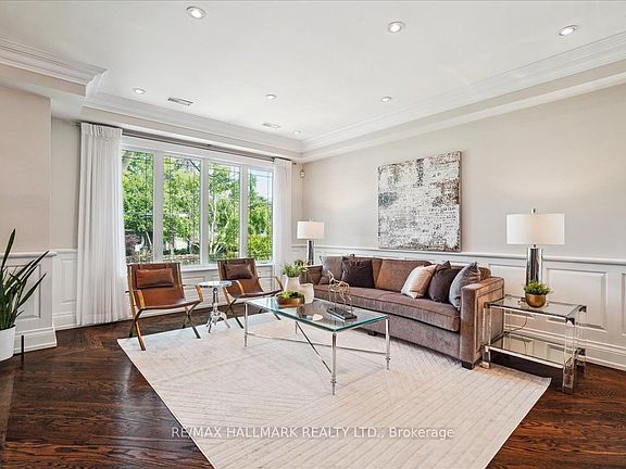 This executive family home showcases the timeless elegance and refined craftsmanship of the Transitional style. Designed by Lorne Rose, the home features high-quality materials and showcases attention to detail and luxury upgrades throughout. Character details, such as crown mouldings and millwork, add understated luxury and classic elements to this modern home. The largest living space for lot size due to 1200 additional sqft added to the floor plan. The bright, airy interior seamlessly connects formal sitting and dining areas, centred around a large gourmet kitchen with a built-in oven, gas cooktop, and modern appliances. It opens to a family room with a fireplace, creating a warm and inviting space that makes this home perfect for daily life and entertaining. Upstairs, the property offers four bedrooms, including two with en-suite bathrooms. The primary suite provides a private retreat with a walk-in closet and a spa-inspired bathroom. The sunny basement boasts soaring ceilings, a spacious recreation room with a walkout to the yard, and an additional bedroom and full bathroom, offering versatile living options. The outdoor space features a deck for al fresco dining, a spacious yard, and an irrigation system in both the front and back yards. The extra-large garage provides ample space for a car, workspace, and bicycles. Located on a tree-lined street in the desirable Leaside High School district, close to the Sunnybrook trail system, Uptown shops, cultural hotspots, and downtown, this home offers the ultimate Toronto lifestyle for executive families seeking a vibrant, family-friendly neighbourhood.