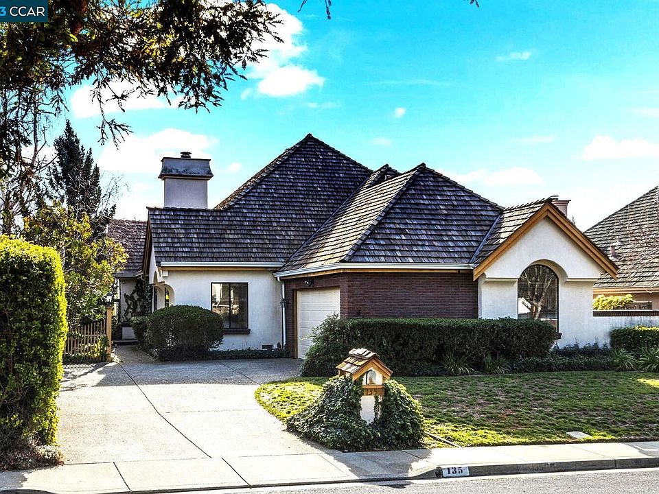 This Bryan Terrace home offers front courtyard and garden entry. The light-filled floorplan features classic wood floors, soaring vaulted ceilings and walls of window framing the valley views. A grand living room with a gas fireplace is open to a spacious dining area and wet bar. Enjoy the seamless flow to the outdoor space. The kitchen also features a vaulted ceiling, a peninsula island/breakfast bar, dual ovens, a cooktop, a built-in workstation, and a casual dining area. Enjoy views from floor-to-ceiling windows in the adjacent sunroom which also has access to the backyard. The spacious primary suite behind a double door entry depicts vaulted ceiling and plush carpeting. A sliding glass door opens to a centralized outdoor patio. The en suite bath offers dual vanities, jetted tub, stall shower, make-up vanity and large walk- in closet. 2 addl bdrms share a full bath. Steps away are the community pool, tennis/pickle ball court. Enjoy the tranquility and sunsets of the outdoor private space along with the Mt. Diablo views. Open Sun 2/26 1-4pm.
