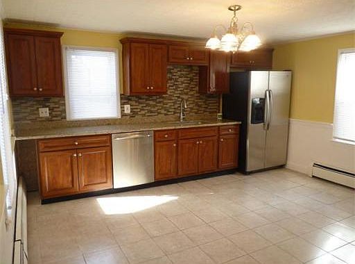 This home has 6 rooms and 4 bedrooms. Many updates that include cherry kitchen cabinets with granite counter tops and stainless steel sink. Refrigerator. dishwasher, stove and microwave are all stainless steel. Has a fenced in yard and parking for 2 cars in driveway