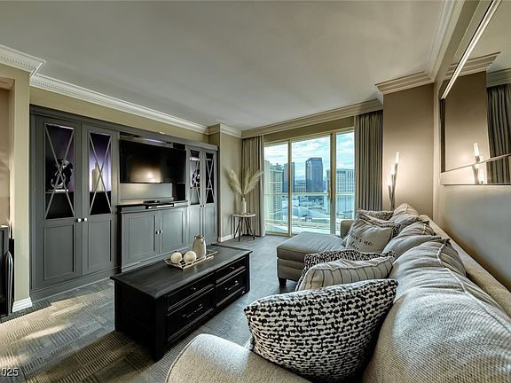 This is a sought after corner unit that has a brilliant strip view and a great location for viewing the F1 races. This is NOT in the rental pool, it has been used as a corporate perk from the seller. Recently professionally remodeled, compared to the rental units this is heads and tails above. This unit is perfect, really. Fully furnished, and all furnishings included and well appointed. High end appliances. If you are looking at The Signature Towers, you will want to see this unit. Fantastic rental options.