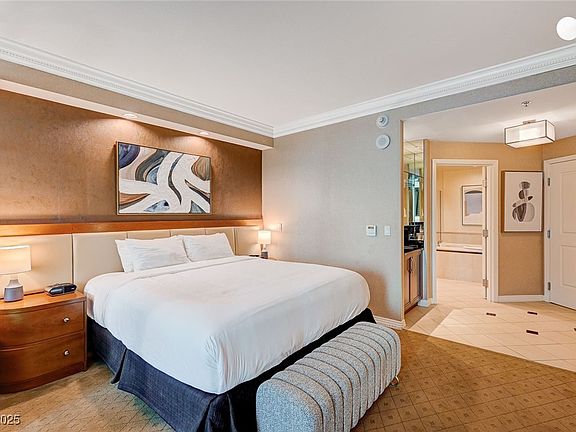STRIP VIEWS with BALCONY ~ This stunning studio suite in tower 2 high-rise condominium offers the perfect combination of luxury, comfort, and unparalleled city views. Located on the 8th floor of one of the most sought-after buildings at MGM Signature. This unit features a well-appointed kitchenette with a mini-fridge, microwave, stovetop, and ample cabinet storage. Cozy living and sleeping area with large windows allowing natural light to flood the space. Modern bathroom with a sleek vanity, spacious shower and oversized jetted tub and contemporary finishes. FULLY FURNISHED. Schedule your private tour now.