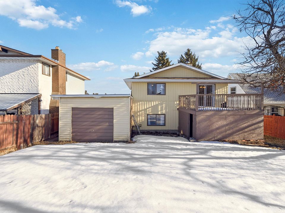 Well-maintained 4-level split in a quiet neighbourhood offering 5 bedrooms, 3 full bathrooms, and three separate living/family rooms. Bright main level features a spacious living room with new carpet, separate dining area, functional kitchen, and main-floor laundry with access to a large double tandem garage. Upper level includes 3 bedrooms, 2 full bathrooms, including a primary bedroom with ensuite. Enjoy a large deck overlooking the spacious backyard, complete with two storage sheds and additional storage under the deck. Lower level offers a large family room with fireplace and bedroom. Basement includes another living area with electric fireplace, plus a bedroom and full bathroom. Freshly painted and move-in ready. Close to schools, parks, shopping, transit, and major roadways.