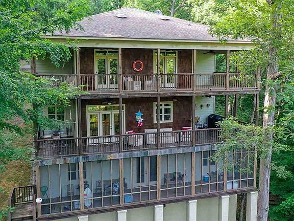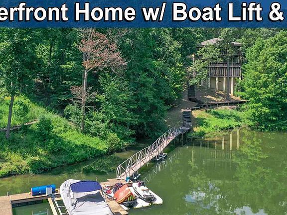 Private & spacious 6 bedroom 3 bath home. Home comes mostly furnished. Luxury primary bedroom w/ luxury bathroom, walk in closet & private full length covered deck. Stone fireplace in living room. Downstairs has been completely remodeled w/ 2 bedrooms, large gameroom/den & full bath. 3 full length decks, one is screened in. Comes with boat slip, brand new boat lift & two waverunner ports. Please take the 3-D virtual tour to see all this waterfront home has to offer.