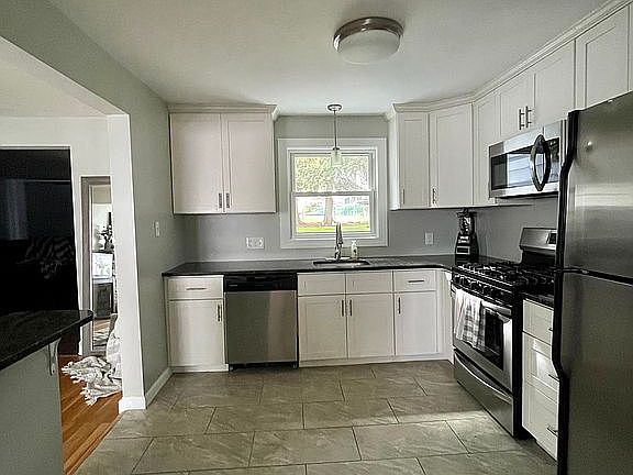 Move right in this charming home located in the Sunrise Terrace. This home offers numerous updates and a double lot! Updates include newer kitchen w/soft close cabinets, stainless steel appliances, plus tile & granite countertops. New carrara marble tile full bathroom, newer windows, freshly painted in every room, and refinished hardwood floors. Enjoy the upcoming cooler month in front of the large stone fireplace. Dining area walks out to covered porch while the large family room addition w/sliding glass door walks out to a brand new stone patio w/fire pit, giving you great options to entertain in the warmer months. This adorable home will keep you comfortable with central air for heating and cooling, even the attached garage is temp controlled! Cozy partially fenced back yard. Conveniently located to everything! View 3D tour by clicking the link or request link from listing agent. Motivated seller, schedule your showing today!
