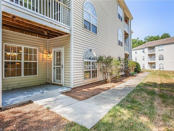 Welcome Home to this move in ready ground level condo with an option of no steps to enter! Enjoy your private porch tucked in the back of the building with a lovely wooded view. Open floorplan living, dining and kitchen with a gas fireplace to keep things warm in the winter. Spacious primary suite with large walk-in closet. Full sized laundry room off of the hall has a linen/storage closet, shelves plus the washer and dryer stay. Convient location near downtown High Point, High Point University, shopping, restuarants and highways.