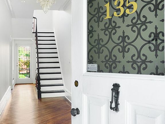 BROOKLYN HEIGHTS BEAUTY ; 25' WIDE HISTORIC HOME 135 Joralemon St. is an exquisite example of a rare Federal-style clapboard house that dates to 1830 that has been restored as a beautiful blend of history and modernity. Handsomely appointed with a gorgeous landscaped front and backyard, located in the heart of Brooklyn Heights, 135 Joralemon Street is a historic treasure that was awarded the New York Landmarks Conservancy coveted Lucy G. Moses Preservation Award in 2008. This 4- story house is 25' wide by 38' deep situated on a 109' deep lot. The home feature a new 3 zone HVAC system and new roof. Original and restored details include crystal chandeliers and sconces, 5 wood burning fireplace, gorgeous plaster work and carved moldings. The garden level features an under stoop entrance, cloak room, den with wood burning fireplace, custom kitchen, and antique wide plank floors, beamed ceiling, and wood burning fireplace. The windowed kitchen has custom walnut cabinetry, 6 burner Wolf range, Sub-Zero refrigerator, Bosche dishwasher and garbage disposal. There is a Dutch door that leads to the garden. Enter the parlor level through the original Federal-style doorway, framed with Ionic columns, and leaded top and sidelights into a graceful hall leading to elegant front and rear parlors. The parlors feature tall ceilings, original restored chandeliers, two marble wood-burning fireplaces, and French doors opening onto covered front and rear porches, overlooking the gardens on each side. One flight up is the master bedroom with, woodburning fireplace, two walkin closets and en suite bath. Next door is another large room with wood burning fireplace that could be used as a library or fifth bedroom. The fourth floor features three additional bedrooms, one full size bath, and a full size washer and dryer. Beneath the Garden level is a cellar that offers ample space for storage.