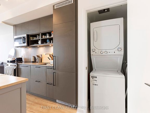 Motivated Seller! !This stunning 1+Den condo at Liberty Market Tower combines modern design with an unbeatable downtown lifestyle. Offering 706 sq.ft. of functional space (including a full 95 sq.ft. balcony), the layout has no wasted space, and the den with sliding doors is large enough to be used as a comfortable second bedroom or home office. Floor-to-ceiling windows bring in abundant natural light and showcase iconic CN Tower and lake views, making the living area bright and inviting. The unit features luxury finishes throughout, including quartz countertops, upgraded appliances, and a designer bathroom. Located in a few-year-old building by Lifetime Developments, residents enjoy first-class amenities such as a 24-hour concierge, fitness centre, and party room. Parking is available for lease through building management (subject to availability). With a Walk Score of 95 and Transit Score of 92, everything you need is just steps away TTC, Exhibition GO Station, the upcoming King-Liberty Station, grocery stores, banks, restaurants, cafes, shops, and parks. Easy access to the Gardiner Expressway makes commuting simple, while Liberty Village's vibrant community offers endless dining, shopping, and entertainment options right at your doorstep. Experience urban living at its finest, with modern finishes, spectacular views, and unmatched convenience in the heart of Liberty Village.