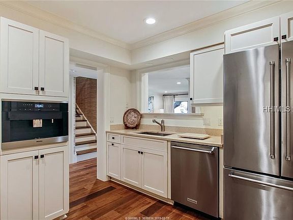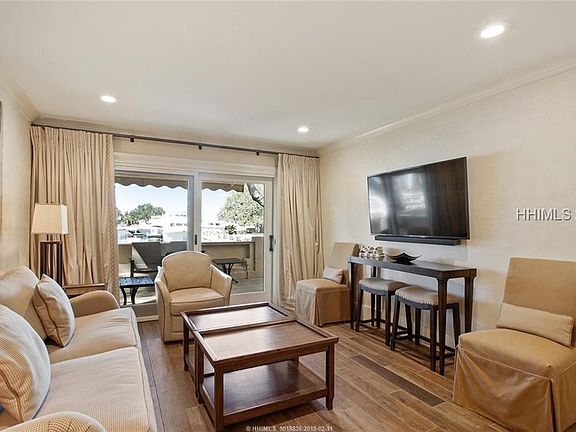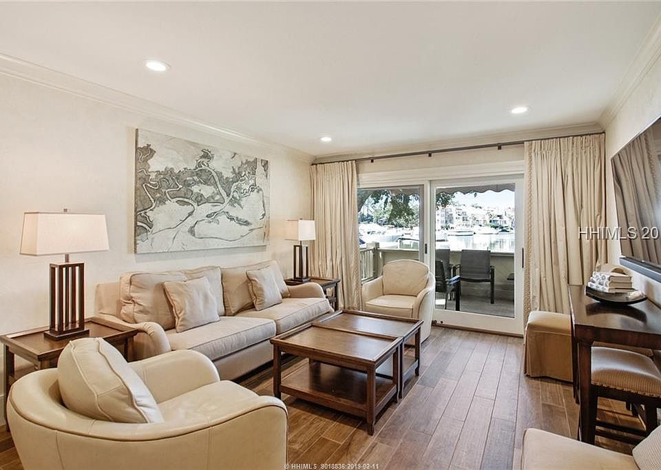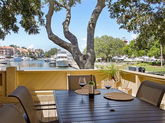 A MUST SEE turn-key property! Waterfront, masterfully renovated, the very finest 3BR/3.5BA villa available in Harbour Town! Amazing views of the yachts, Harbour Town lighthouse, Daufuskie Island and sunsets over Calibogue Sound. Fully reconstructed in 2016, two masters with deepwater views, all bedrooms en suite, hardwood floors, open kitchen, stainless appliances, quartz counters, smooth ceilings, crown, full laundry, custom-made furnishings throughout. Living & dining room opens to a private, massive walk-up harbourfront deck. A Sea Pines 'Premier Property' generating $66,000/yr rentals.