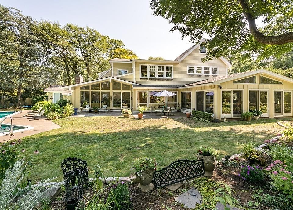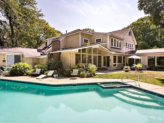 A Spectacular Home, Setting and Neighborhood Locale for this 10-room,5-bedroom,4-Bath Contemporary Farmhouse with great open spaces on two levels featuring walls of glass and windows and doors open to the lush landscape and a private oasis surrounded by greenery in the backyard featuring flat play space, decks and terraces, a koi pond, a waterfall in the ledges and a beautiful heated swimming pool for true country club indoor-outdoor living, dining and entertaining. The light-filled, recently renovated kitchen, dining, living and family rooms all step outdoors and are warmed in winter with two fireplaces. The master suites on the first and second floors both have doors to the outside. The second floor loft is the perfect play space or home office space in the treetops! With its cool, breezy coastal vibe and its flexible bedroom arrangement, this alluring home is perfect for a couple or a multigenerational family who want "the perfect quiet spot" in this beachside neighborhood !!!!!