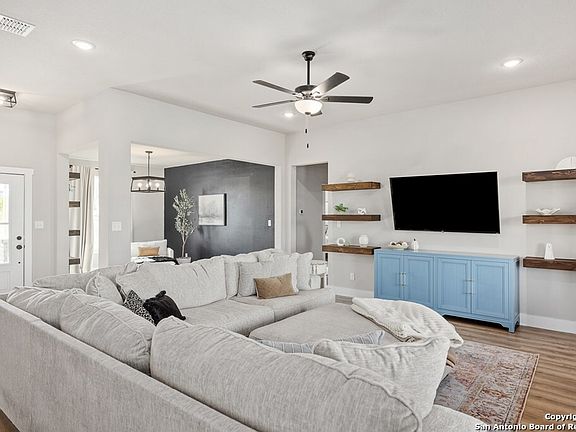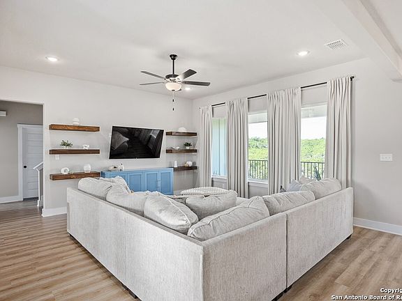 Welcome to your new home in Tierra Linda Ranches, built in 2024 by Tilson Homes. This spacious, open-concept design features large windows, generous closets, and a bright, clean feel that still feels brand new. The kitchen is a showpiece with an oversized island overlooking the great room, ample counter space for cooking, a cozy coffee nook, and an adjoining area currently used as a sitting room that could also serve as a formal dining space. Beautiful custom floating shelves in the great room, sitting room, and kitchen add warmth and character.. The main level offers three bedrooms, two baths, and a small office, while the upper level includes a fourth bedroom with a full bath that can also serve as a game room, media room, or second living space. Situated on 6.37 acres at the end of a quiet cul-de-sac, the property provides rolling Hill Country views and a private fenced yard with exterior access, ideal for pets. Tierra Linda Ranches is a 3,000-acre working ranch community offering AG Exemption for lower taxes and amenities such as a swimming pool, tennis/ pickleball courts, a private airport & Volunteer Fire Dept, horse riding & stables, clubhouse, & rivers/ ponds for fishing!