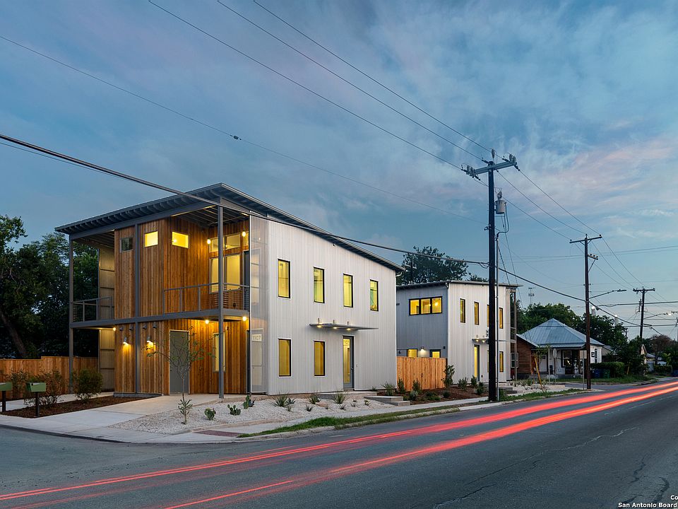 2 Brand new architecturally-driven zero-lot-line single family home in Denver Heights, only a few blocks from downtown. Both homes are eligible for a type-2 short term rental license in close proximity to Project Marvel and new Spurs stadium site. Contemporary construction by award-winning, local project team just east of downtown. Sale includes single family home at 135 Louisiana St. and 1107 S. Cherry- both homes are on separate lots and share a zero-lot-line. No condo association, no HOA, and no recurring fees- fee simple ownership opportunity. Contemporary design, construction, and detailing throughout. Commercial- grade carport below with private balcony above, sweeping neighborhood views, and small enclosed back yard. Solar and EV charger ready. Low maintenance metal siding, roof, and construction detailing. Easy to ride a bicycle to many metro-area attractions: Hemisfair, convention center, SBC Center, etc. Units also available for individual sale.