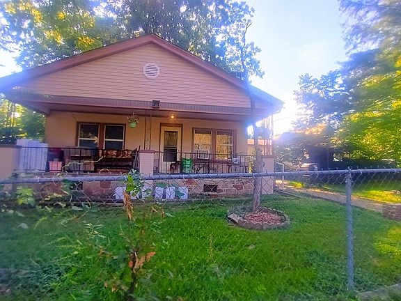 Charming 1940 bungalow on a spacious corner lot featuring durable cinder block and stone construction. This character-filled home boasts original hardwood floors, a cozy stone fireplace, and tasteful updates to the kitchen and bathroom. Enjoy a fully fenced yard, detached shop, and a small studio guest house—perfect for guests, creative space, or additional income. Currently tenant occupied, offering immediate investment potential.