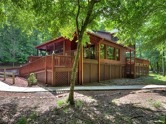 Rustic 2 bedroom 2 bath River Cabin in the amazing Coosawattee River Resort. All wood interior with open beam, Cathedral ceilings, large Great Room with stack rock wood burning Fireplace with gas log option. Eat-in kitchen with pantry w/island, large master on main with additional office/reading space. All surrounded by wrap-a-round covered porch (with Hot Tub) and Handicap access. Upstairs features large open loft and large master suite with private screened porch, double bowl vanities in both baths. Huge 2 car garage with storage/workshop space all on a level lot with Park Like Setting and concrete walk and patio at easy access to River's edge. Add Resort amenities-Covered, Heated Olympic pool, Fitness center, tennis and so much more. 2020-06-12