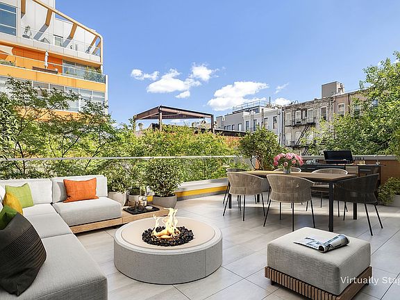 Discover the epitome of modern urban living and get ready for spring in this one bedroom, one bathroom condominium that features a huge private terrace located in the heart of Williamsburg Brooklyn. This low-rise building boasts architectural elements such as high ceilings (approx 10') and floor-to-ceiling windows, flooding the living space with natural light. The Brazilian walnut hardwood floors and recessed lighting add a touch of elegance to the interior.