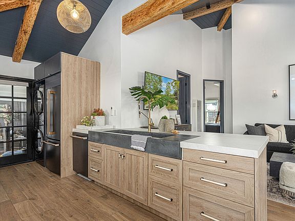 COMING SOON for a MAY Move in! Step into this beautifully renovated 1920s California Bungalow Cottage, ideally located in the heart of Old Town Tustinjust a short stroll from historic El Camino Real's local shops, restaurants, and community events. This home stands out with its high-end finishes and thoughtful design throughout. No detail was overlooked in the renovation: from coffered wood-beamed ceilings to designer wallpaper and industrial-modern lighting, the home blends vintage charm with contemporary flair. The open-concept living area features vaulted, smoke-gray ceilings and striking blonde oak floors, offering a bright, welcoming space.The European-inspired kitchen is equipped with premium appliances, including a stylish emerald green Ilve range, Cafe-brand refrigerator, and a deep concrete farm sink. Aged Chicago brick backsplash and porcelain countertops round out the look, giving the space a curated, one-of-a-kind feel.Additional features include wall-mounted smart TVs, mini-split AC/heat units, and an in unit stacked Samsung washer/dryer. The bedrooms offer creative storage solutions and a functional loft-style sleeping space, while the bathroom showcases a cast iron clawfoot tub, open rain shower, and ebony marble tile flooring. Enjoy quiet mornings or evenings on the newly expanded front deck beneath the mature elm tree canopy. Walk to the local Farmers Market, enjoy summer concerts and theatre at Pepper Tree Park, or explore downtown's dining and nightlifeall within a quarter-mile. Experience stylish, elevated living in a unique corner of Old Town Tustin. Please note: This is the front house of a duplex. Staged-unfurnished unit. Street parking only. A storage shed is available, and one small pet will be considered with additional pet rent.