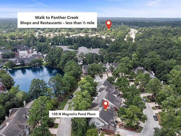 Live a low-maintenance, high-enjoyment lifestyle in this prime, heart of the Woodlands location. Start your mornings on the back patio with a cup of coffee while taking in the soothing LAKE VIEWS. Spend Saturday mornings browsing the artisan goods at a nearby Farmer's Market. Go for a work-out at the YMCA. Take a 10 minute drive to Market Street for some upscale shopping. Enjoy nature on the over 200 miles of trails. Walk to Panther Creek Shopping Center for dinner at local favorite, Republic Grille. With over 1900 square feet of living space, lots of natural light, two living areas, spacious bedrooms, and sought after LAKE VIEWS this condo lives LARGE. Huge primary bedroom with lake views, ensuite bathroom with shower & soaking tub, and 2 closets. Big kitchen with lots of storage, counter space, island & entertaining bar. HOA handles exterior so there's no long to-do lists. With recent UPDATES of HVAC, Water Heater, and Garage Door openers in 2021, you can move right in.