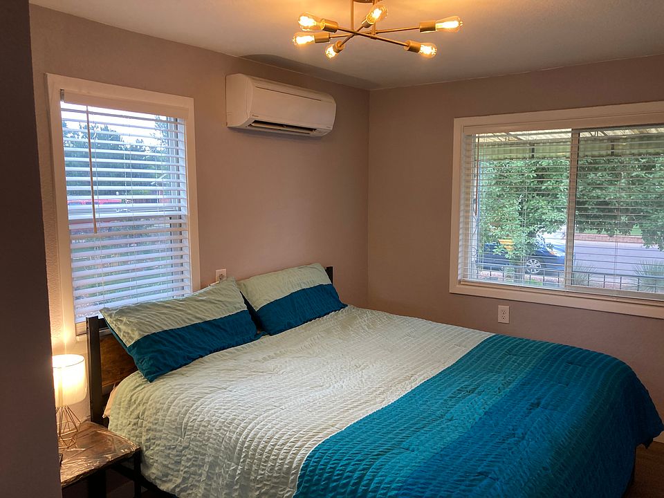 The Barnum Bungalow is a recently updated, attached guest suite conveniently located on Denver's West side. It will be available for short term and mid-term leases on September 1st. The longest initial lease we would offer is 3 months and if it's going well, we would extend it. At 350 square feet, it is small and efficient. Tenants are welcome to come and go freely using the private entrance and smart lock, and the hosts are available as needed since we live on site in the other half of the house. The suite's hallway is separated from the hosts' living room by an interior locked door. The amenities are comparable to a standard hotel room, but we strive to offer a much higher level of service and value.