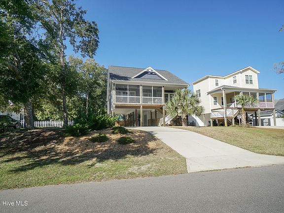 Better than new & waiting for you with furniture & appliances included. This home has everything you could want including a view of the intracoastal waterway yet removed from FEMA spf flood zone - lenders will not require flood insurance. Enjoy the view & coastal breezes from the front screened porch. Well appointed with loads of extras including vinyl rails. Step inside to the light and bright spacious living area offering everything you need as a primary residence or beach getaway. The lovely owner's retreat gives you all the space you'll need with a spa like bath featuring beautifully tiled walk in shower, double sink vanity topped with granite, backed by a shiplap wall, walk in closet, & easy access to the laundry room. Upstairs hosts two large bedrooms and bath with tub/shower combination. Covered back porch overlooking the fenced backyard big enough for a pool. The ground floor hosts lots of outdoor space for entertaining, outdoor shower & a half bath. Extra storage for all your beach & fishing gear. Stop looking and start living your Oak Island dream today.