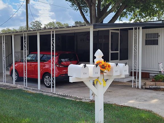 55+/2BD2BA/732SQ+240SQ LANAI/UPDATED (Lot fee a reasonable $550.00 monthly) This is a ready to move in neat and clean with many updates and two full bathrooms. This one has all new flooring a brand new tub shower combination unit unit installed. You will certainly enjoy the all screened raised lanai sitting level with the home including the included washer and dryer units. The lanai is protected on three sides from the rain due to the car-port on one side and covered patio area on the back with a covered front door entrance at the front, very cozy place to hang out. The living room entered through a glass door-wall is open and roomy with all new floors installed. This is a split floorplan with one bedroom and full bath to the front and the other bath and bedroom at the rear, the main bath shared with the rear bedroom is updated with a new bath shower combination unit. The dining and kitchen area is open to the living spaces so you can entertain from the kitchen area. Outside at the back of the drive is an oversized metal storage shed complete with storage shelving and bench. This is very close to the clubhouse and the park activities located just around the back. Oakhill Village is conveniently located off State Route 60 in Valrico close to everything but back in this quiet 55+ community.
