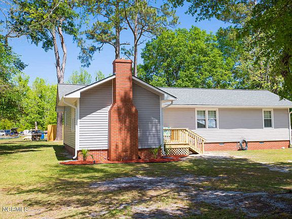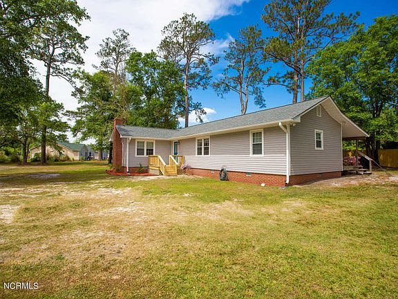 This beautifully updated, 2 bedroom, 2 full bathroom country-coastal home is nestled on just over an acre of private land surrounded by wildlife, gorgeous trees, and is only minutes away from a public boat ramp! Located within easy access to the ICW, residents enjoy cruising nearby coastal destinations in the area enjoying year-round boating conditions. The property is centrally located to Downtown Swansboro, Camp Lejeune, and Emerald Isle. No HOA or city taxes! The spacious kitchen features a large center island that is perfect for entertaining guests! A large covered back porch and fire pit welcome you outside in addition to 3 out buildings including a multi-purpose shed up fitted with electricity to allow use for tinkering with tools/etc., a detached carport, and a small shed - perfect for additional storage. The owners are currently working on rebuilding the front porch and will update photos upon completion. Owners have also recently installed a partial wood rear fence for additional privacy. New 40 yr Architectural Roof, new HVAC unit, all new vinyl windows, Victorian Grey Dutch Lap Vinyl Siding, 5'' seamless gutters. Master bath includes tiled walk-in shower, new vanity, ceramic tile flooring, and new fixtures just to name a few. New wood laminate flooring in Dining, Foyer, and Living Room. All new Luxury Vinyl in Master Bath, Guest Bath, Kitchen, and Bedrooms. You will not want to miss out on the opportunity to call this special property home! This one won't last long folks!