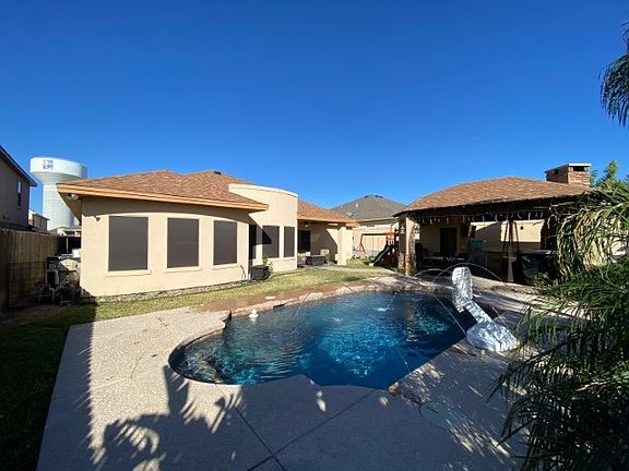 A home with personality - custom stucco exterior, shingle roof in great condition. Spacious open concept living, Granit counters, vast eat-in bar, dining area. Large master with on-suite bath, triple windows allow lots of natural light, two additional bedrooms and full bath. Tile floors, ceiling fans and vaulted ceiling throughout, utility / mud room and 1/2BA off hall leading to garage. Enjoy outdoor entertaining with palapa, swimming pool and swing set. To many amenities to list. Ready for your family!