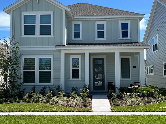 Brand new Prominence II by David Weekley located in the West End at Town Center in Nocatee. Sellers were transferred prior to moving in and sad to leave this lovely home in the heart of Nocatee with all amenities, restaurants, and shopping just a short golf cart or bike ride away! The open concept plan is beautifully appointed with modern farmhouse finishes, quartz countertops, and includes 4 bedrooms PLUS a spacious office. The first floor master suite has an upgraded tile shower, soaking tub and large closet. Upstairs are 3 spacious bedrooms and a loft which could be used as a playroom, study area, or another tv room. The upstairs bathroom sparkles with dual sinks, quartz countertops, and tile bath. A large attic with easy access for storage is accessible from one of the bedroom closets and ensures you will have ample space to store your holiday decorations and other treasures! A dual gas line on the outdoor patio makes this space ready for a grill and firepit. This home is directly across the street from a darling park with play areas and a small and large dog area. Enjoy the Nocatee lifestyle in a low-maintenance home where you will have time to enjoy all the amenities including pickleball courts, splash water park, sprayground, basketball courts, fitness center, and nature trails. No worries about anything as all warranties are in effect for this brand new home!