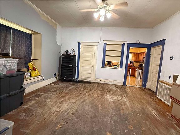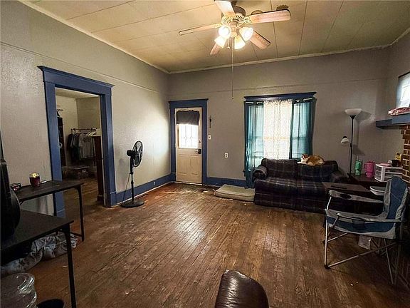 This two-story dwelling presents a range of desirable features, including four bedrooms, 1.5 bathrooms, Central heat and air, new flooring, and paint coming downstairs in the next month. A few attractions include a spacious dining room, pantry, generous storage, and closets. A convenient half bathroom is located on the landing at the top of the stairs, potentially serving as an office or playroom. Three bedrooms feature oversized closets and ceiling fans. The yard offers a suitable space for a shed, providing additional storage. The front porch swing beckons you to unwind amidst the picturesque mature trees. Make this house your own.