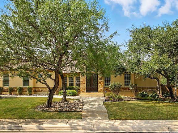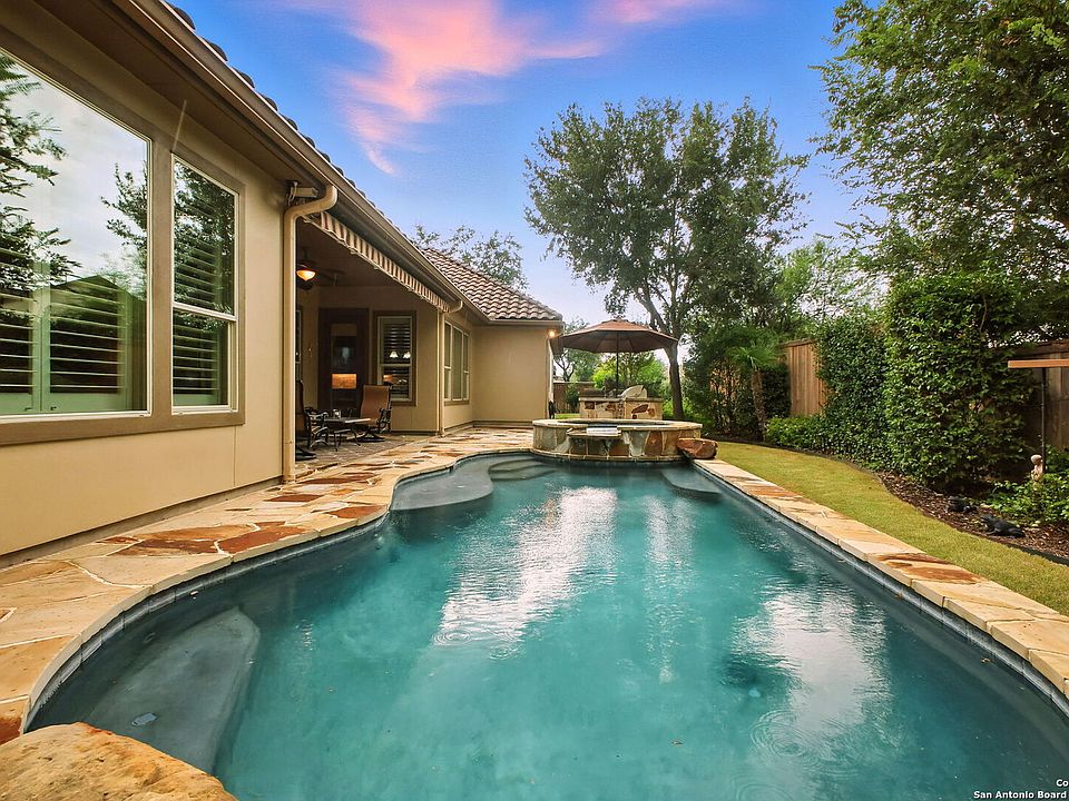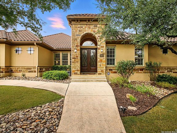 Situated on a majestic .35-acre homesite in the exclusive "Willow Wood @ Shavano Park" community, this elegantly designed residence offers a refined balance of luxury and comfort. Drive up to the lush landscape with stunning rock/stucco exterior & Tile roof boasts elegant curb appeal. The thoughtful flowing layout showcases superior craftsmanship throughout, with wood/tile floors throughout main traffic areas, plantation shutters, open floorplan, windows galore allowing natural light to flow through and detailed custom architectural elements at every turn. The chef's kitchen features stainless steel Viking appliances, ample built-in cabinetry, gas stove/range perfect for both everyday living and entertaining. The primary suite is split from the other bedrooms & offers a serene retreat with a spa-inspired bathroom and a spacious walk-in closet. The 5th bedroom can be used as an office space or mother in law suite. Walk out to an entertainers dream back yard with a covered patio, stunning pool/spa for those warm days & built in kitchen with gas grill. You will never want to leave home! This home is a very rare find in a rare community and won't last long so come and see it today!