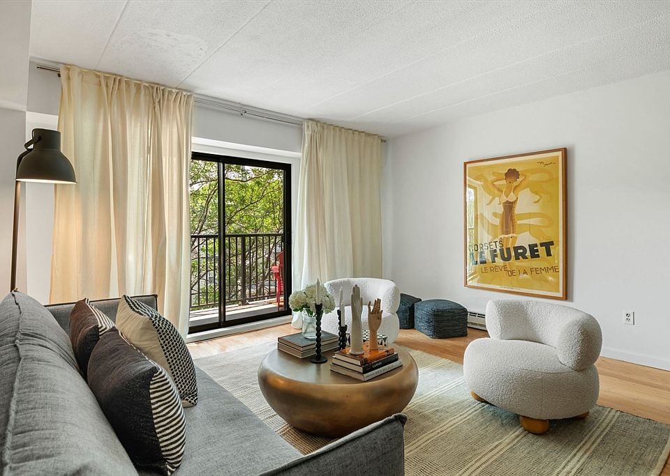 Perfectly located on the fourth floor of The Amory House in Coolidge Corner. This two-bedroom, two-bathroom features an open living and dining area with direct access to a private patio through a sliding glass door, fully equipped galley kitchen with dishwasher, disposal, and microwave, king-sized primary bedroom with ensuite bath and second bedroom that fits a queen-size bed, has adjacent full bath and space for a home office. Common roof deck with in-ground pool, city views, fitness center and clubroom. One garage parking space conveniently situated next to the elevator entrance is included. Professionally managed elevator building with on-site superintendent. Located in the heart of Coolidge Corner across the street from dog-friendly Winthrop Square and a short distance from Hall’s Pond Nature Sanctuary. Easy commute to Boston by car or the MBTA Green Line. Convenient to Longwood Medical, Boston University, Trader Joe’s, and many fabulous shops and restaurants of the neighborhood.