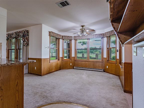 Large brick home on 18.12 acres with a nice shop and equipment barn. Beautiful property, well maintained inside and out. Home has a large living area, big kitchen with granite countertops, a pantry and lots of cabinets, and a formal dining area along with a breakfast area. The master suite has two walk in closets, and separate vanity area. Two additional bedrooms and baths, separate laundry room and a huge storage room finish out the home. Outside you will find a sprinkler system, an additional storage area, and a fenced back yard. The property features a nice steel shop with a covered concrete approach, a diesel storage tank, and a steel six bay equipment barn. There is a current survey.